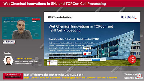 RENA, a European wet chemistry process tool manufacturer with over 3,300 machines installed globally, participated in the recently concluded TaiyangNews Annual Flagship Virtual Conference – High-Efficiency Solar Technologies 2024. Damian Brunner, Senior R&D Manager for Solar & Battery at RENA Technologies GmbH, presented a comprehensive range of wet chemistry process tools designed for cost-effective, high-efficiency cell fabrication at the TaiyangNews conference (see RENA presentation here).