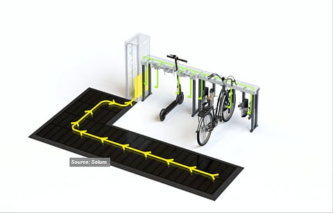 The Helios station can charge a variety of LEVs, including e-bikes, e-scooters, and Segways. Depending on the configuration of the station, it can provide charge to 6 LEVs simultaneously. The charging time also depends on the system configuration including the solar panel array's power output and the battery capacity. It further comes with an app-controlled security system that protects the vehicles from theft during the charging process.