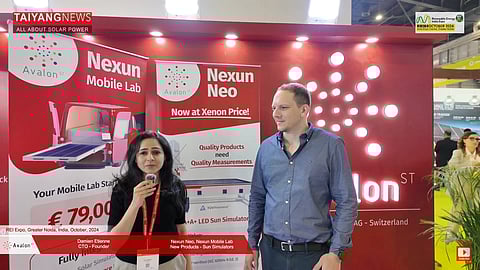 Established in 2018, Avalon ST, a Neuchâtel, Switzerland-based LED sun-simulator maker, promoted its latest tools suitable for the Indian market at the recently concluded REI Expo 2024. The company presented 3 key offerings – the brand new Nexun Neo sun-simulator for mass-production, Nexun Mobile Lab for on-site panel testing, and Nexun Ultra for laboratory applications.