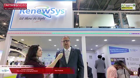 RenewSys India Pvt. Ltd., a well-known name in India’s PV manufacturing space that started making encapsulants 11 years ago, followed by backsheets, PV modules, and PV cells, showcased its latest product offerings at REI Expo 2024. With current annual production capacities of 1.8 GW for PV modules, 8 GW for encapsulants, and 4 GW for backsheets, the company is now venturing into TOPCon cell making with an upcoming 2.5 GW cell fabrication unit, according to Avinash Hiranandani, the vice-chairman and managing director of RenewSys. This new cell manufacturing unit is expected to be operational by the next 9 months.